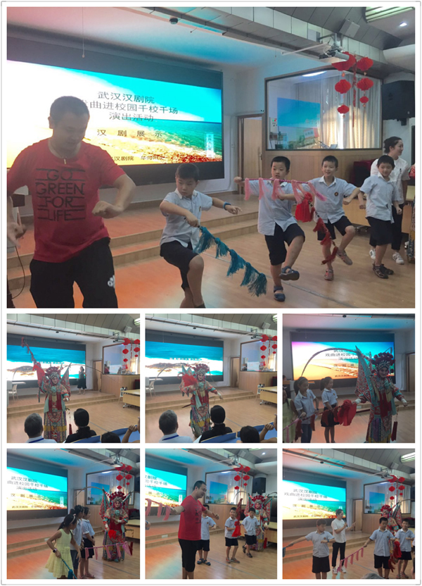 Activities began, the students will be the host teacher humor attracted her, with 100, 800, 10 digital introduces Han Opera, easy to understand, very impressive. Then the actor han. Several from Wuhan opera academy actor, brought to the students is the Han Opera "Mu Guiying Zhi Yangs". “ Mu Guiying ” a famous opera singing on stage, the presence of students won enthusiastic applause. The actors DEDECATES, investment performance will reveal the most incisive style of opera art. After the performance, it is the time for the students to imitate the show. An actor introduces clothing, accessories and features of opera role to the students, the students are in fact under the guidance of teachers, carefully imitate female and male male of Han Opera wusheng movements, they imitate the action, also won the audience applause.